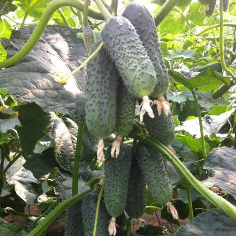 Высокоурожайный ранний гибрид партенокарпического огурца. Растение открытого, компактного типа с короткими боковыми побегами, что уменьшает трудоёмкость выращивания и облегчает сбор урожая. Характеризуется сильной корневой системой. Формирует по 3-4 плода в узле. Плоды крупнобугорчатые, очень однородные, без светлых полос, транспортабельные, долго сохраняют товарный вид.