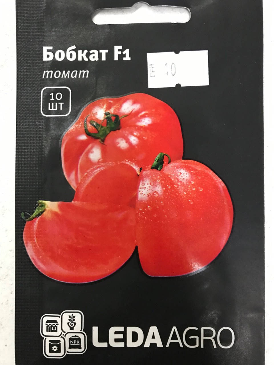 Томат Бобкат F1 ― среднеранний детерминантный крупноплодный гибрид ― 60-65 дней от высадки рассады. Легко переносит жару. Стойкий к расстрескиванию на кустах даже при перепадах влажности. Плоды округлой формы, ярко-красного цвета. Масса плода 250-300 г. Хорошо сохраняется, пригоден для переработки. Фасует компания "Садыба центр"