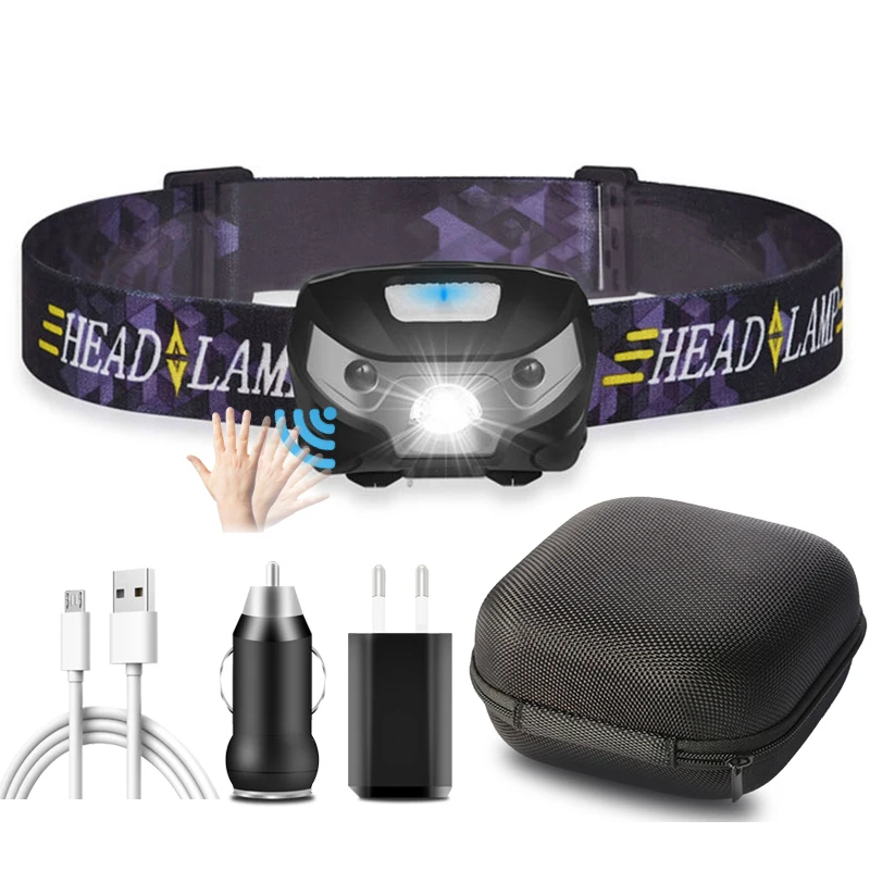 Сенсорный светодиодный налобный фонарь с зарядкой от Usb, налобный фонарь для рыбалки, портативный налобный фонарь, фонарь для бега, яркий фо...