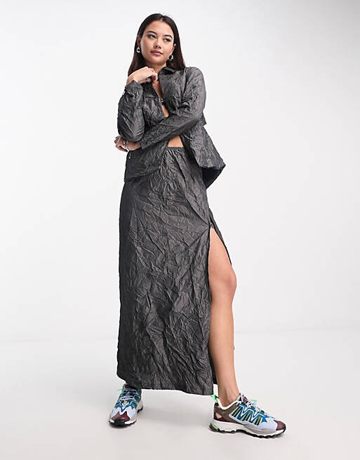 Серая жатая длинная юбка COLLUSION с разрезом по бокам