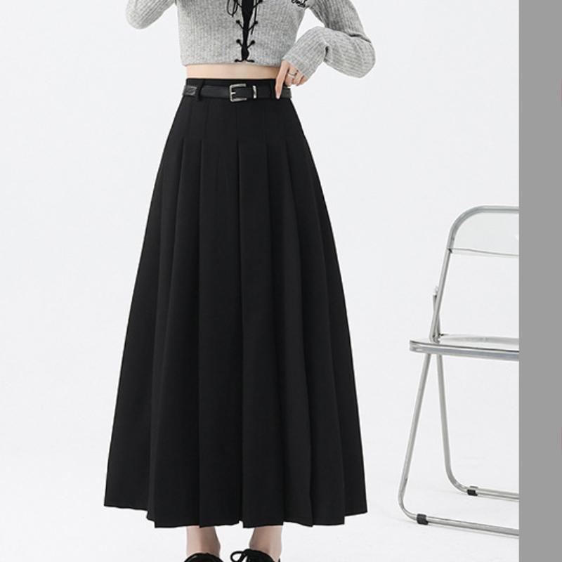 Серая плиссированная юбка для женщин на весну и осень. Юбка-трапеция с высокой талией, повседневная, с широкими бретелями, выше колена, средней длины. M