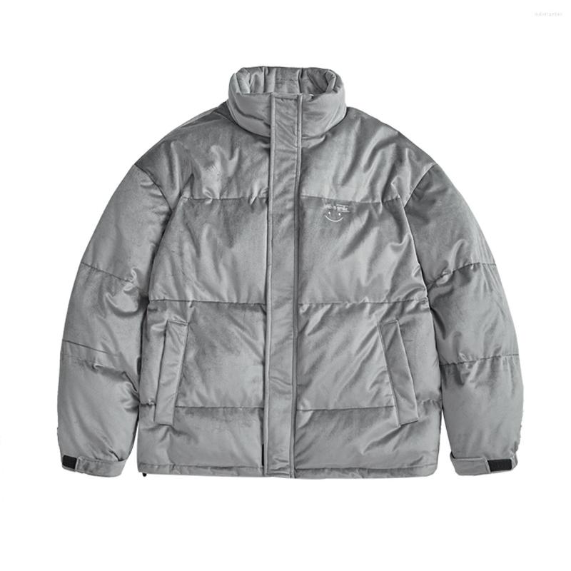 Men' Down Hip Hop Jackets Warm Parka Men Harajuku Padded Jacket Top Streetwear Vintage Retro Embroidery Coat Winter Outwear, Light gray