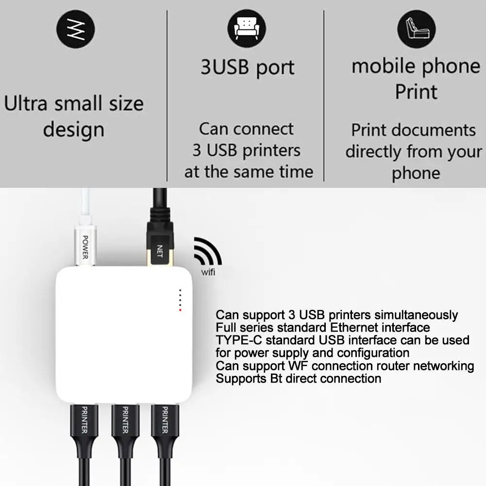 Сервер сетевой печати NP332 с 3 USB-портами, многоинтерфейсный, стандарт сетевой печати 100M, поддержка сети, соединение Wi-Fi BT4.0