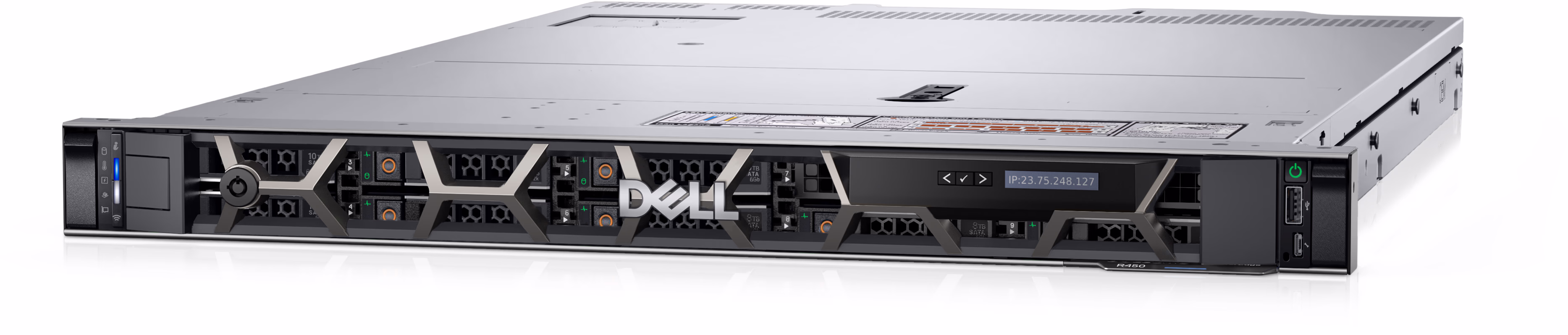 Сервер Dell PowerEdge R450, 1xIntel Xeon Silver 4314 (up2), 1x32Gb RAM, 1x1.92Tb SATA SSD, 8x2.5" HS, PERC H755, noDVD, 2xGLAN, iDRAC9 Ent, 2x600 Вт (up2), 1U, R450