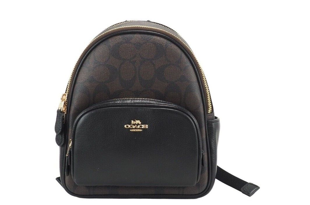 Мини-рюкзак из холщовой ткани с фирменным покрытием коричневого и черного цвета Coach
