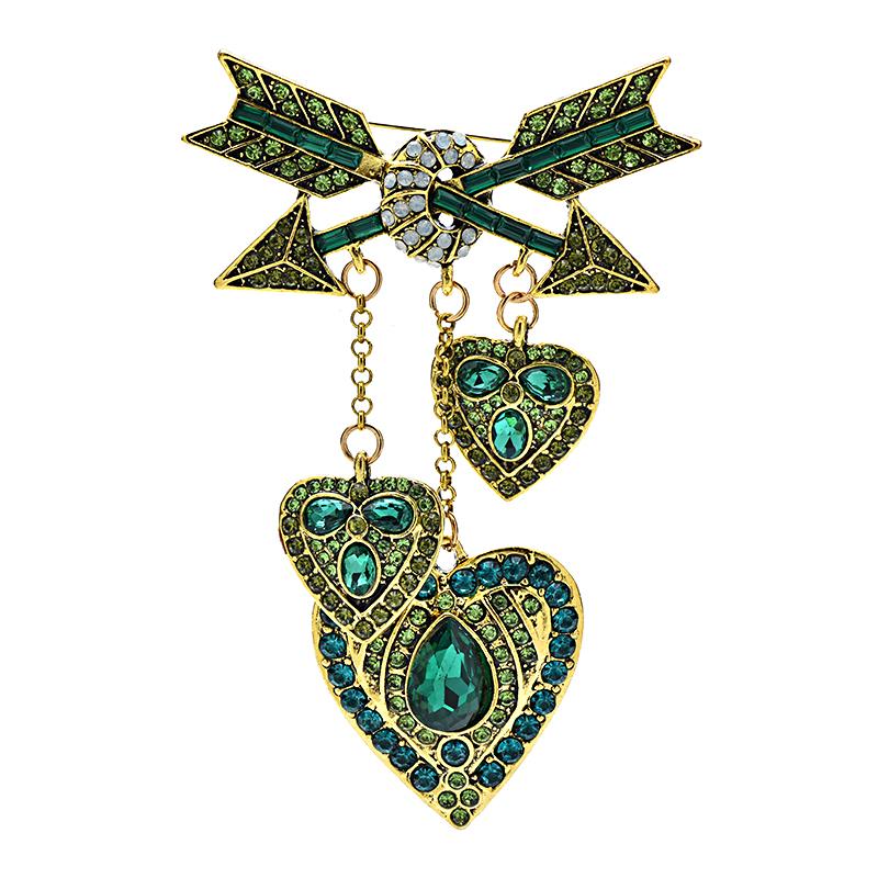 Сердце Брошь Женщины Унисекс Сияющие Стрелы Цепь Любовная Вечеринка Офис Булавка Подарки зелёный