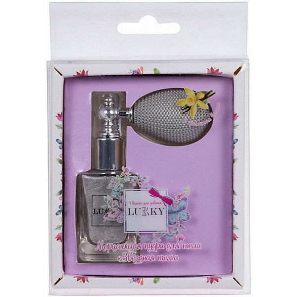 Серебристая мерцающая пудра для тела Lukky в распылителе "Звёздная пыль" с ароматом ванили
