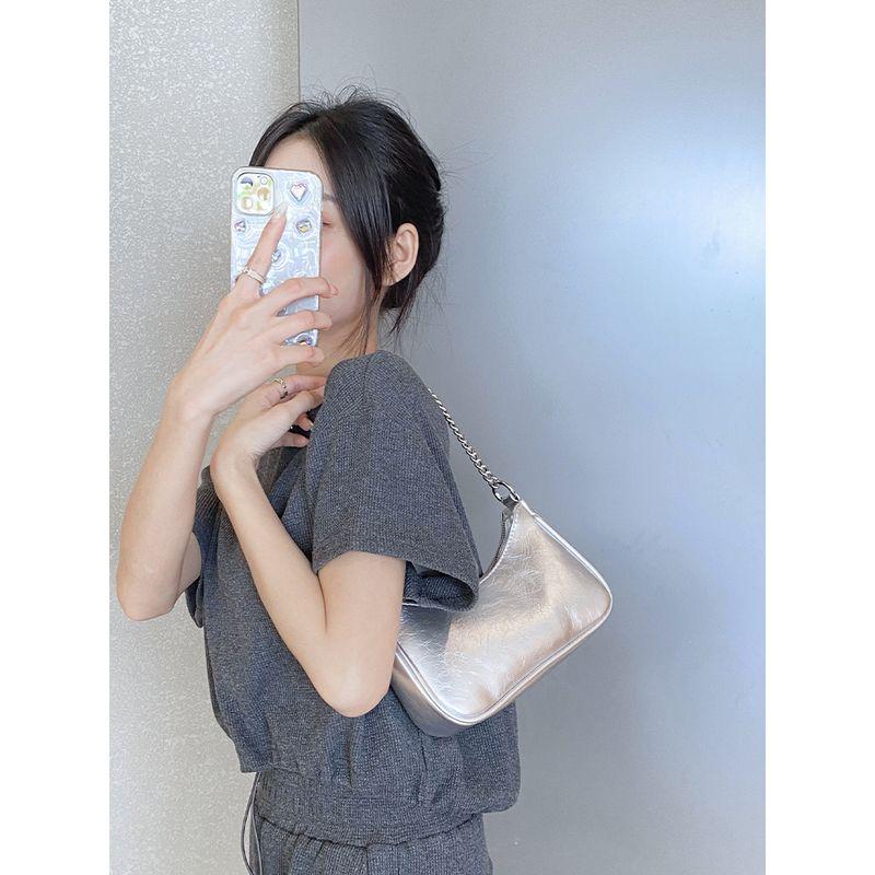 Серебристая необычная простая маленькая сумка через плечо с цепочкой Silver(-2 shoulder straps)