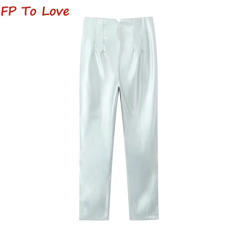 Серебристые минималистичные брюки Y2K с высокой талией, прямые штаны, повседневные брюки в полоску, потертые облегающие Костюмные брюки 7901532 420