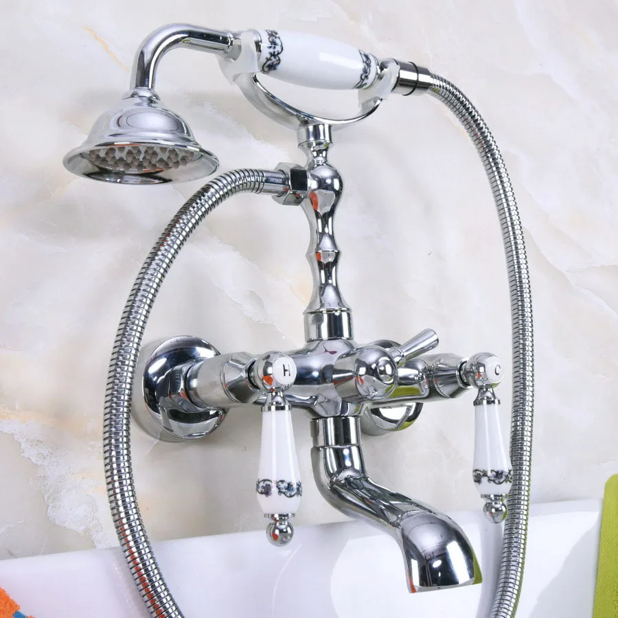 Серебристый, хромированный, латунный настенный смеситель для ванной комнаты, ванны, набор с ручной душевой лейкой 150 см, смеситель Dna204