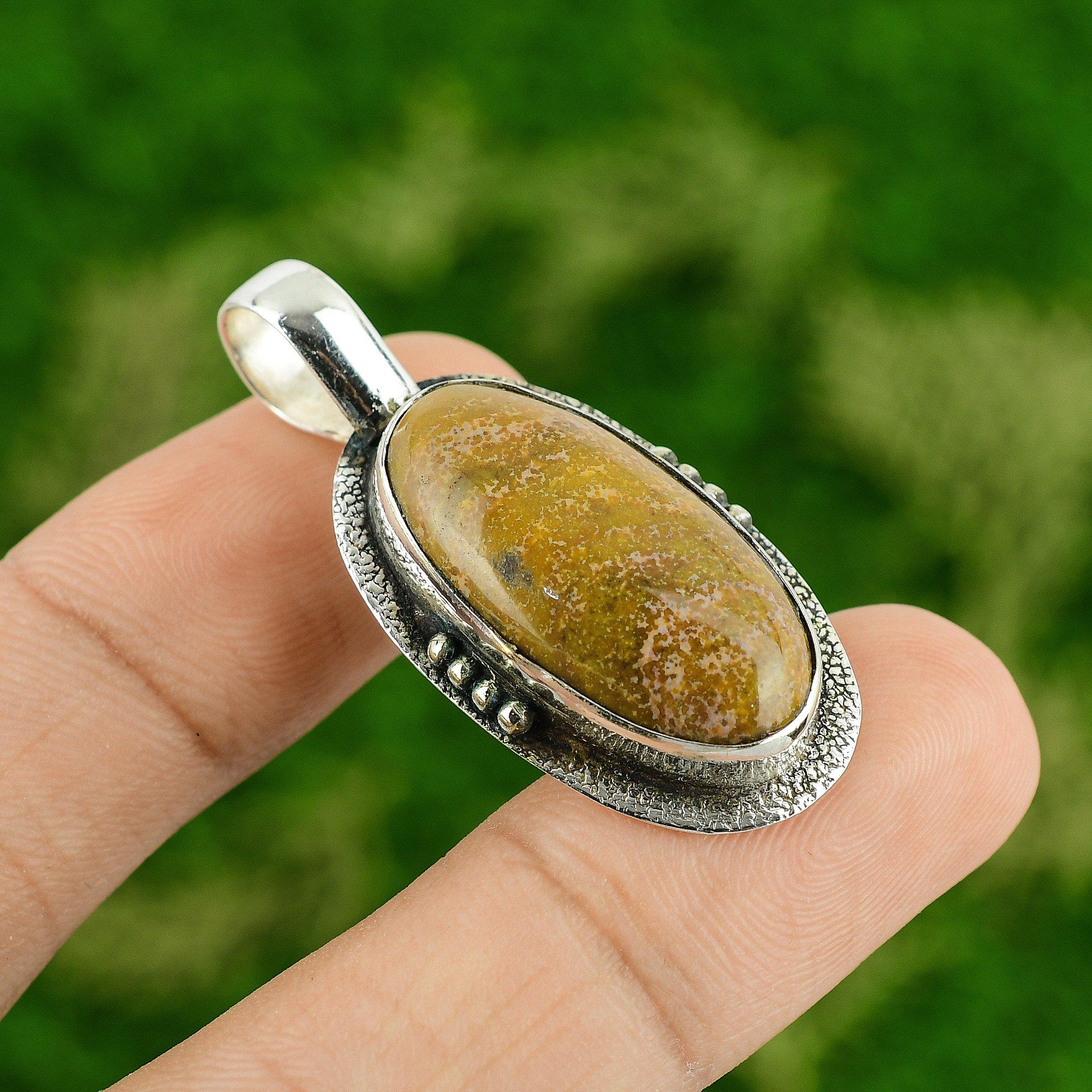 Серебро 925 пробы Океанический Яшма Драгоценный камень Юбилей Безель Жена Подвеска Ювелирное изделие