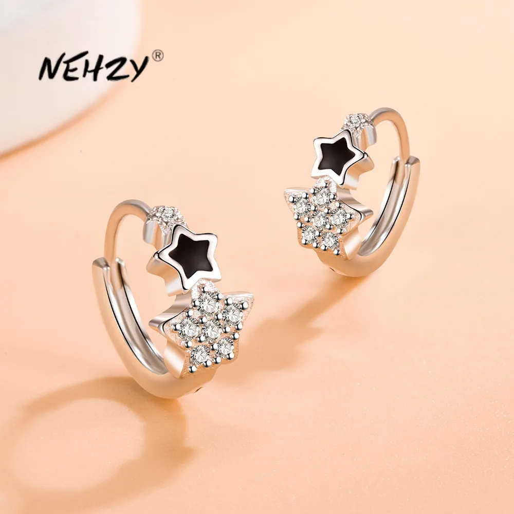 Серебро 925 пробы от DAYIN, новые женские модные ювелирные изделия, высококачественные простые эпоксидные черные пятиконечные серьги с кристал...
