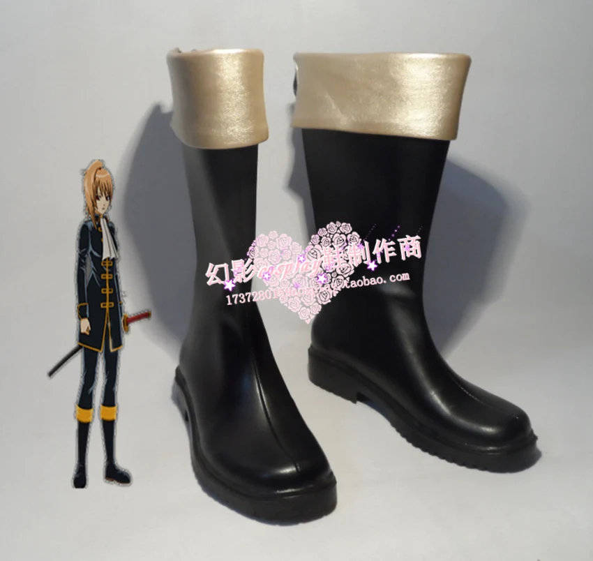 Серебряная Душа Sougo Okita Вечерние черные сапоги для косплея H016