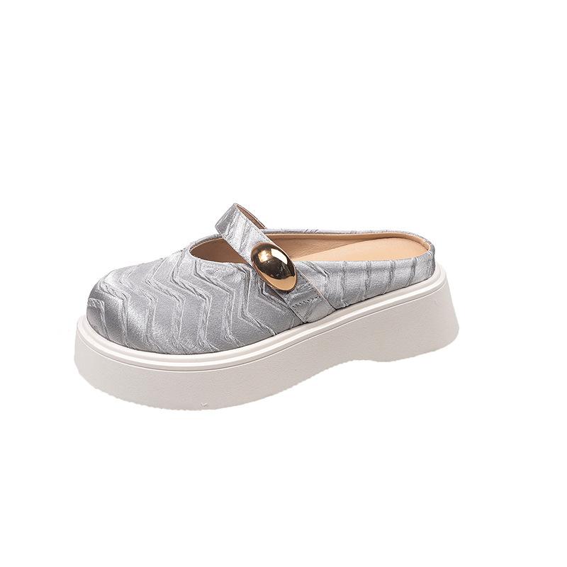 Серебряная сумка с толстой подошвой, полушлепанцы, женская уличная обувь, для ленивых, на одной педали для увеличения роста, летние новые модели 2025 года с юбками 35 серебряный серый