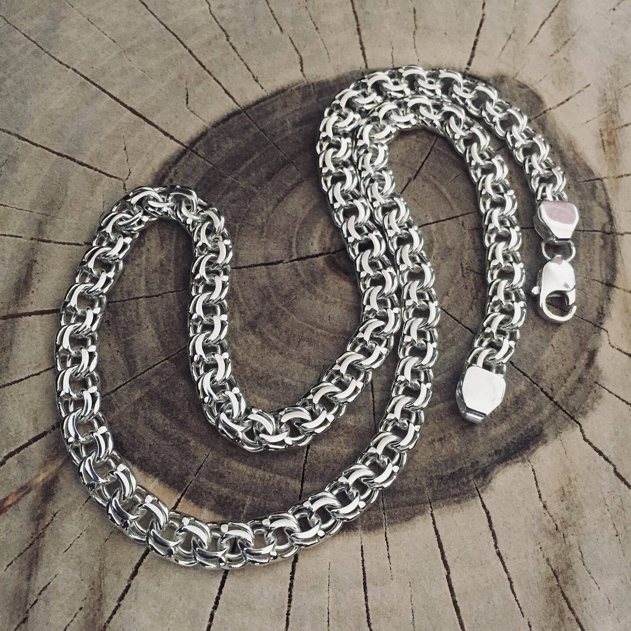 Серебряная цепочка 925 пробы ручного плетения Бисмарк.