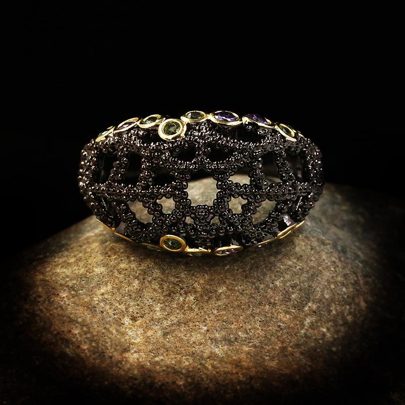 Серебряное Высококачественное Черное Нано-Циркониевое Черное Позолоченное Ажурное Кольцо Популярная Мода Свадебное Обручальное Ювелирное Изделие Подарок 10