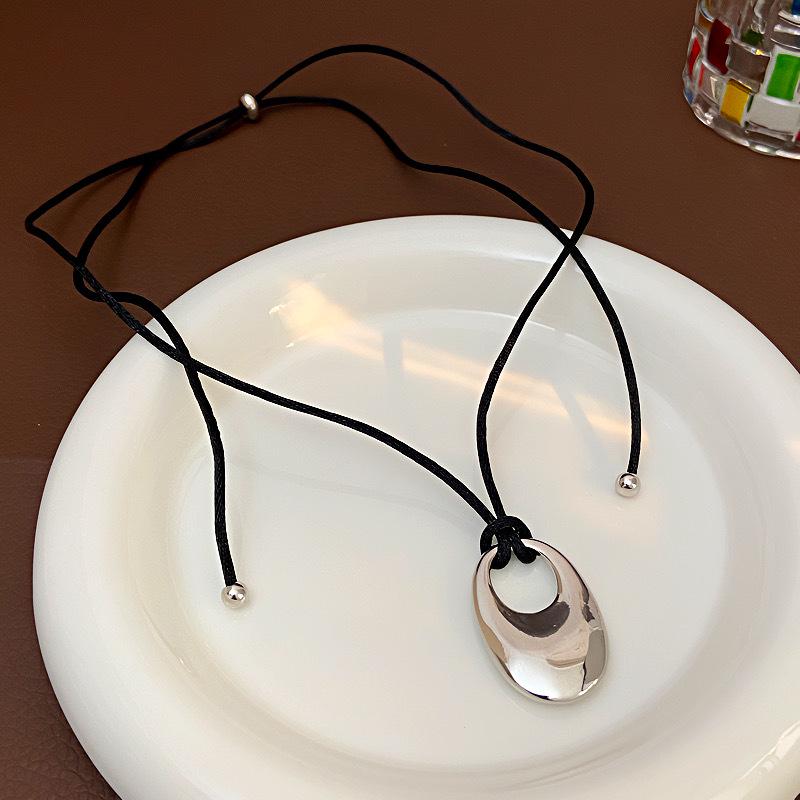 Серебряное зеркальное черное шнурковое ожерелье для женщин - Модная длинная цепочка для свитера Осень/Зима с нишевым дизайном