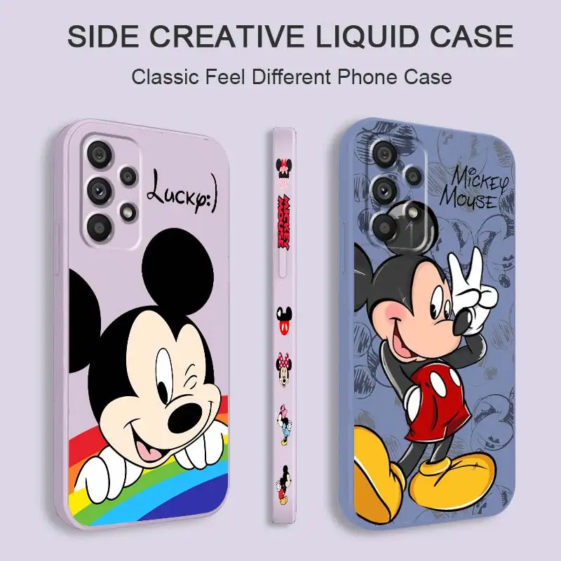 Anime Love Minnie Mickey Art Phone Case For Samsung Note 20 10 A54 A31 A14 A03 A22 A34 A04 A24 Ultra Plus 5G Liquid Left Rope