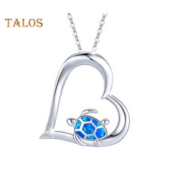 Серебряное ожерелье в форме сердца с черепахой для женщин, маленькая подвеска в виде черепахи, ожерелья с изображением океана, пляжные украшения, подарок для девочек синий