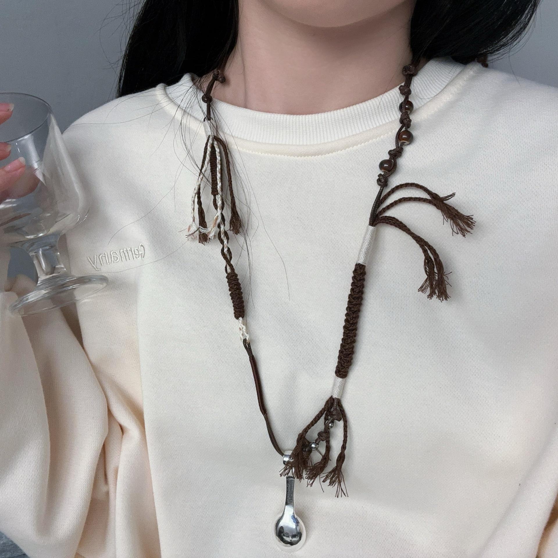 Серебряное ожерелье-ложка унисекс от Wang Hedi: Плетеная веревка, стильная, роскошная, универсальная N1133 коричневый