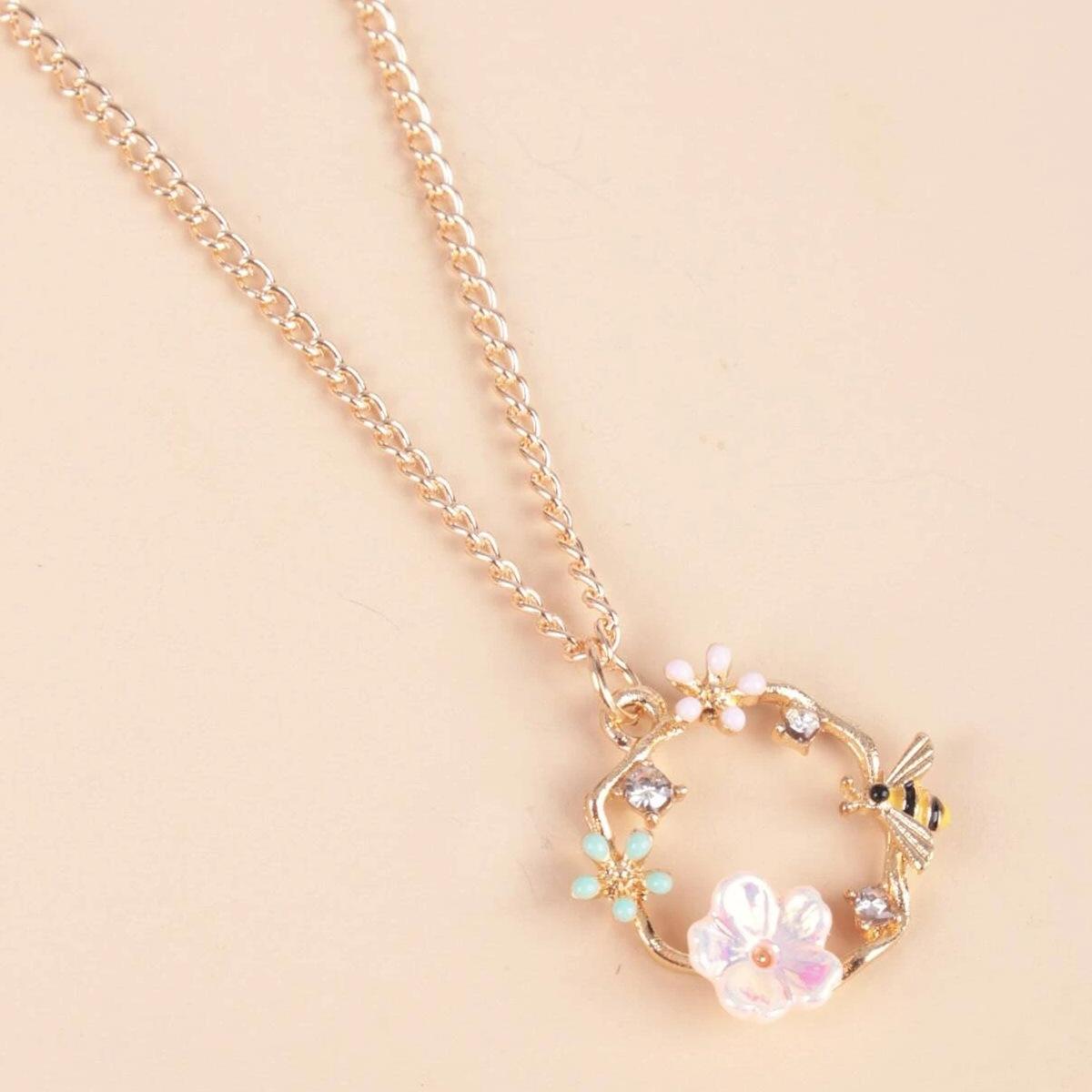 Серебряные игольчатые серьги в форме венка из корейского серебра 925 пробы с бриллиантами и пчелой, супер сказочные серьги-гвоздики в форме цветка-ракушки
