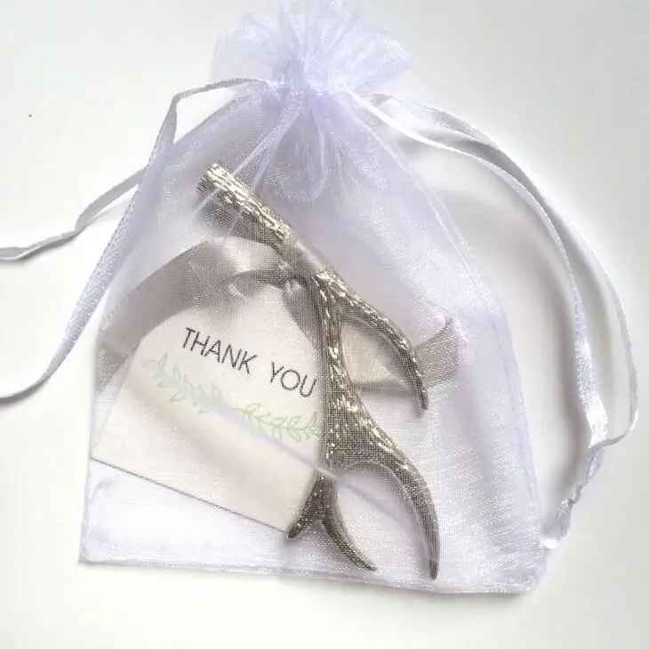 Серебряные открывалки для бутылок с рожками винное пиво открывалки в Opp мешках подарки на праздник свадебный подарок LX1553