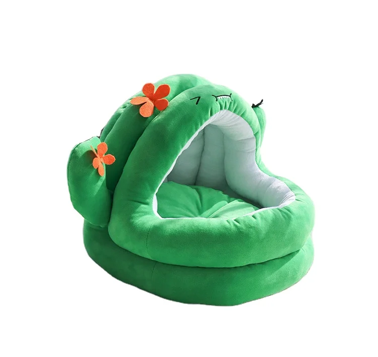 New Design Cactus shape Plush Dog Bed Crystal Luxury Plush Warm Round Half Pack Cat Nest Deep Sleep Cat Mat Pet Bed