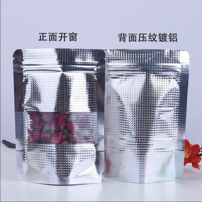 Серебряный тисненый пакет на застежке-молнии с окошком для еды, из алюминиевой фольги