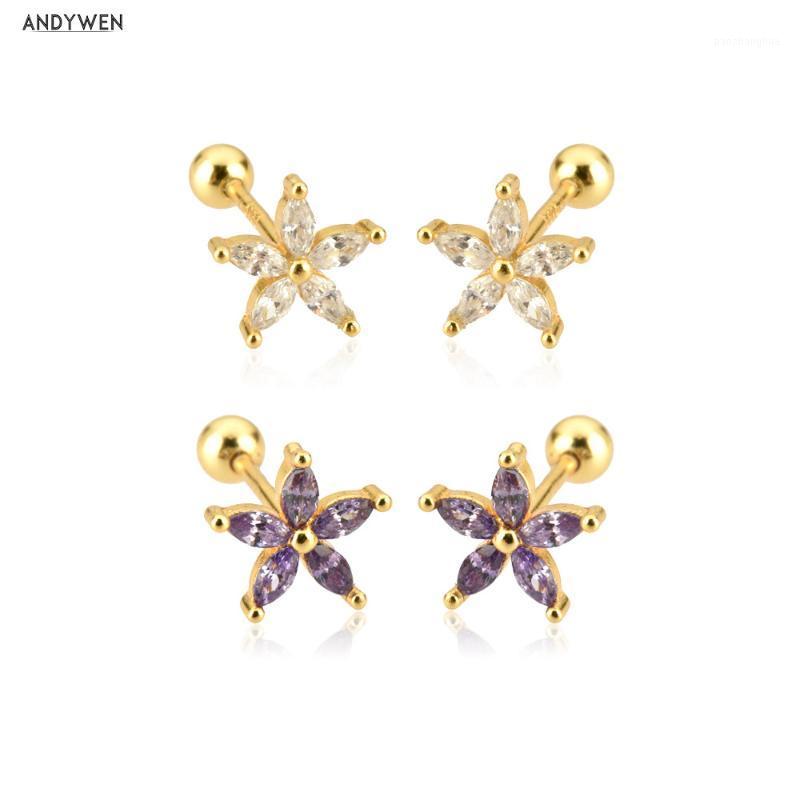 Stud ANDYWEN 925 Sterling Silver 2022 Five Zircon Earring Piercing Clear Fashion Fine Jewelry Tiny Luxury Clips Pendiente, Golden;silver