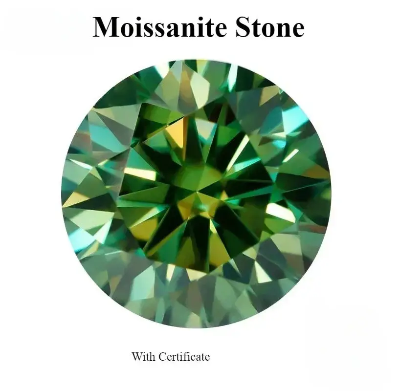 Moissanite Stone Round Cut Yellow Green Colour VVS1 Gemstone Charms Beads Advance Jewelry Making Materials With GRA Certificate