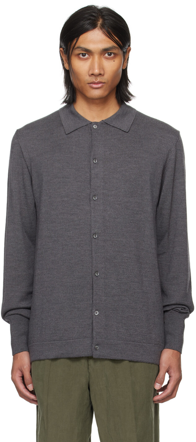 Серый кардиган Брент. Вязаный кардиган из шерсти мериноса.Раскладной воротникЗастежка на пуговицыВентилируемые боковые швыТрикотажные манжеты в рубчикЦвет поставщика: Средне-серый 100% шерсть мериноса. Сделано в Италии.