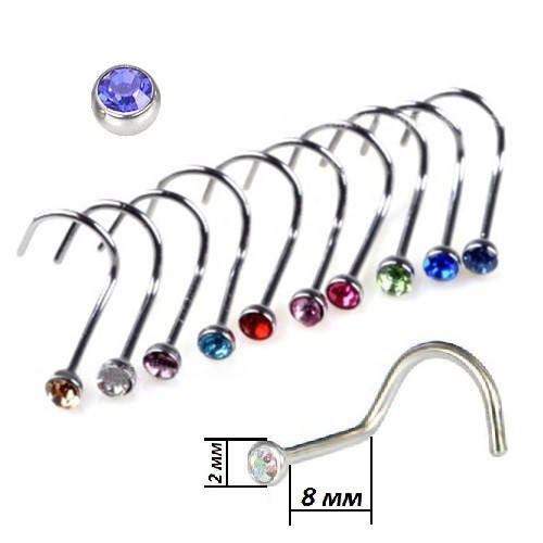 Замеры изделия: длина прямого отрезка штанги 8 мм, диаметр камушка 2 мм.