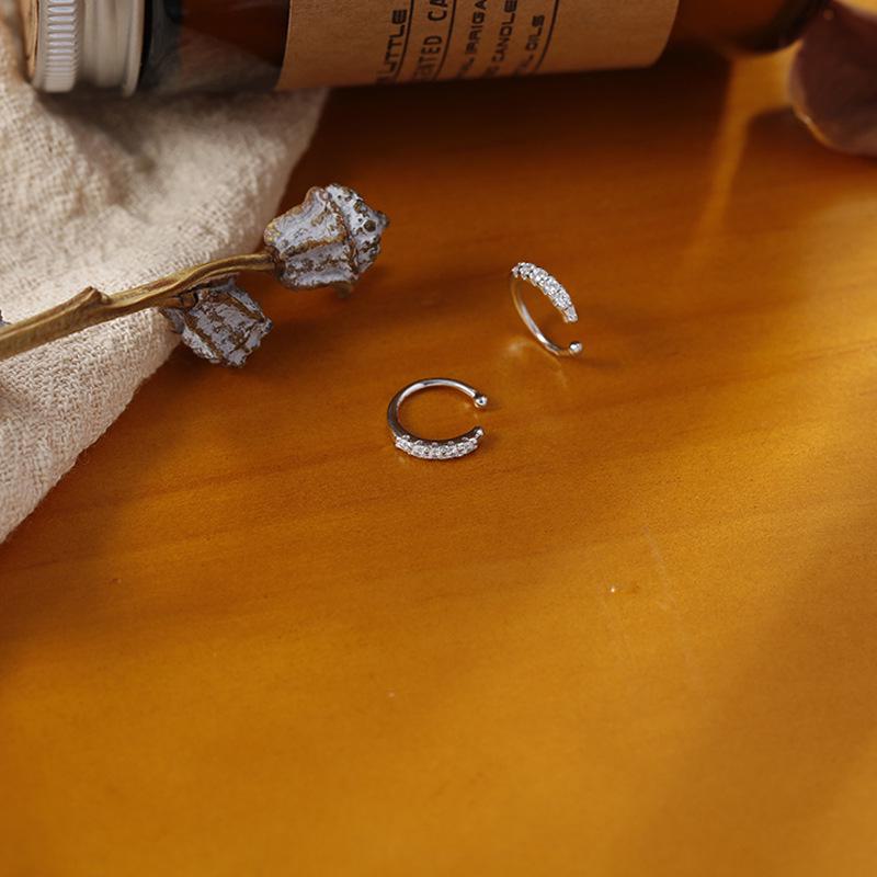 Серьга-кафф Banyan Tree S925 из стерлингового серебра с цирконием, не требующая прокола — простая клипса во французском стиле ES1418 белого золота
