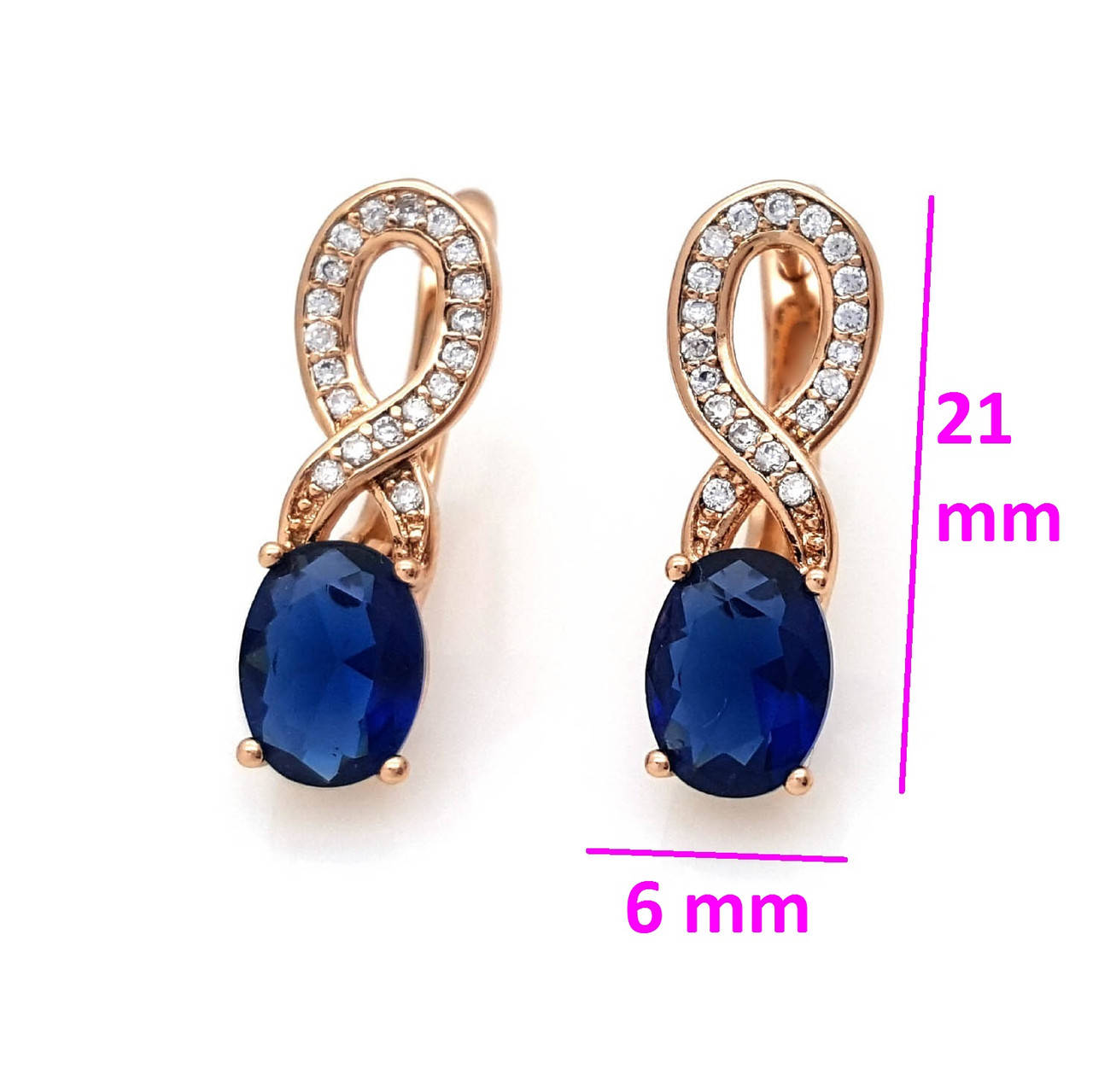 Серьги Бесконечность, с синим цирконием, англ.замок, позолота Xuping, 14К