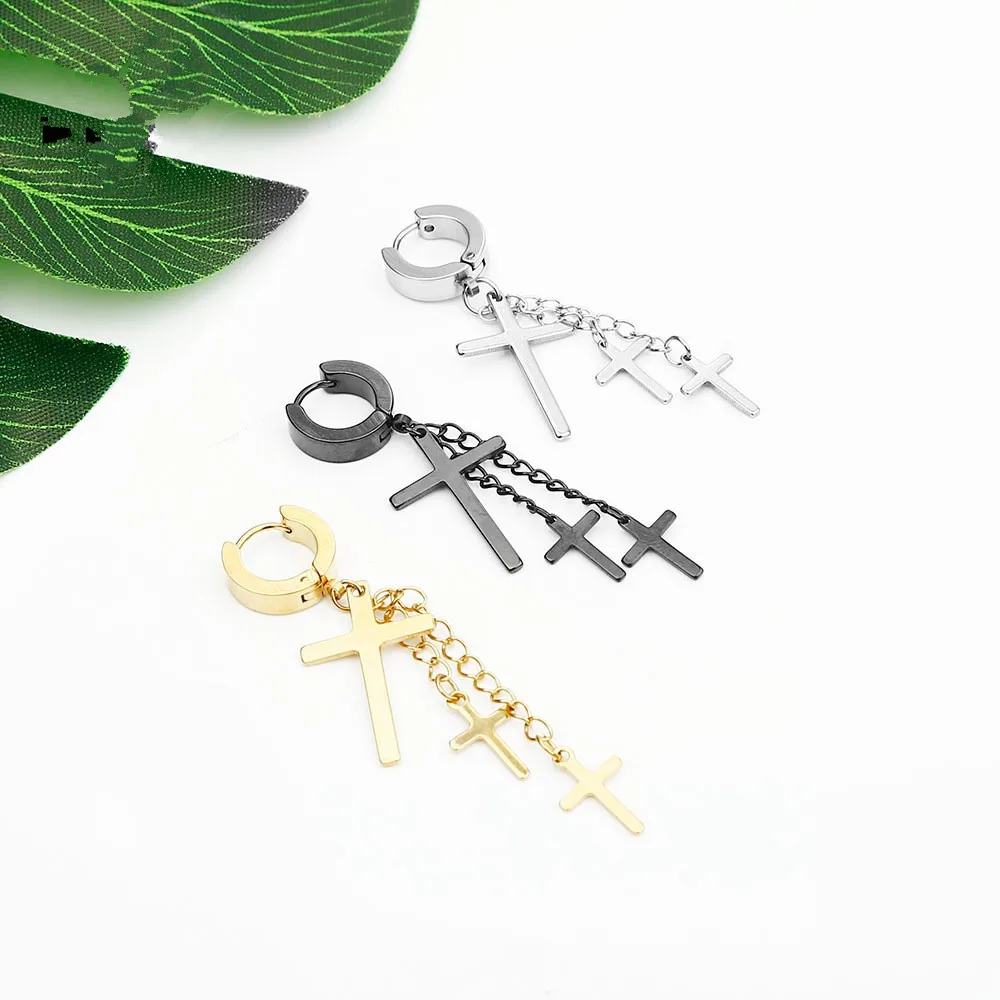 Серьги-Клипсы из нержавеющей стали с изображением Иисуса на длинном кресте