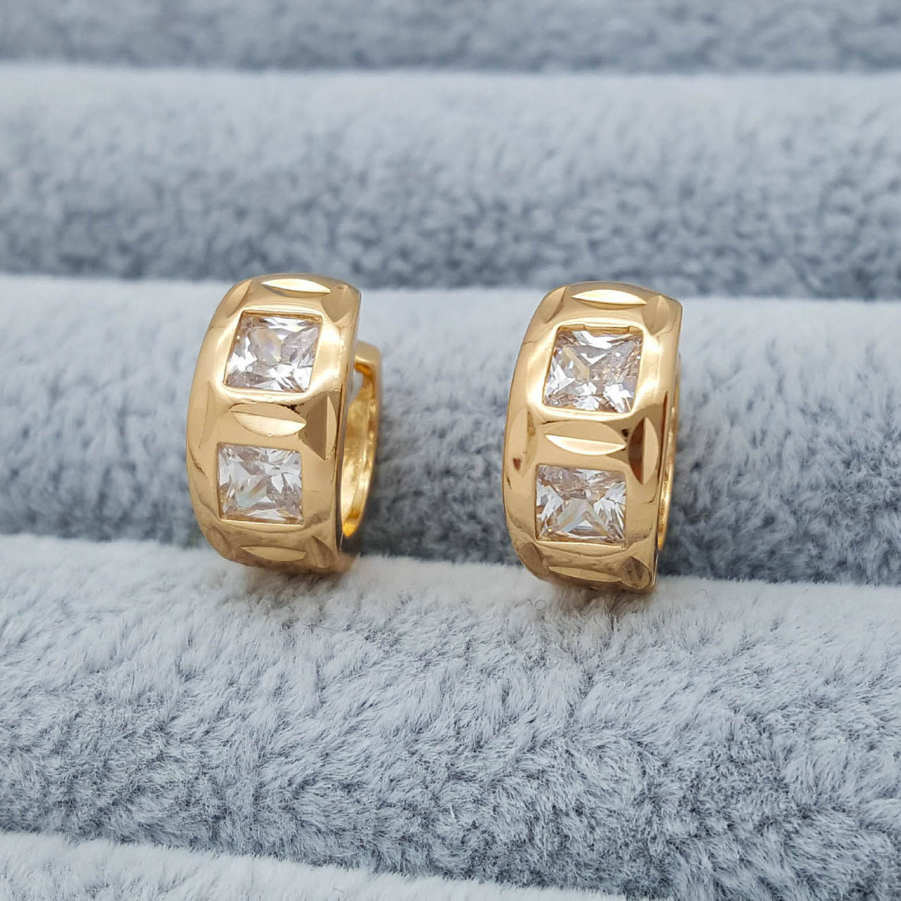 Серьги, Кольца с резьбой и кубическим цирконием, позолота Xuping, 18К