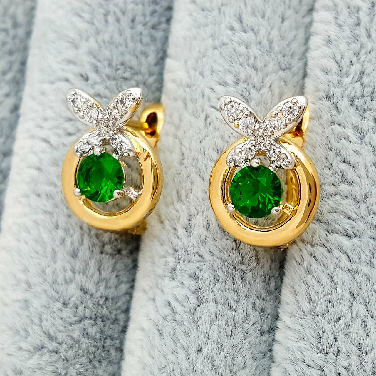 Серьги Кольцо с бабочкой, вставка зеленый цирконий, англ.замок, позолота Xuping, 18К