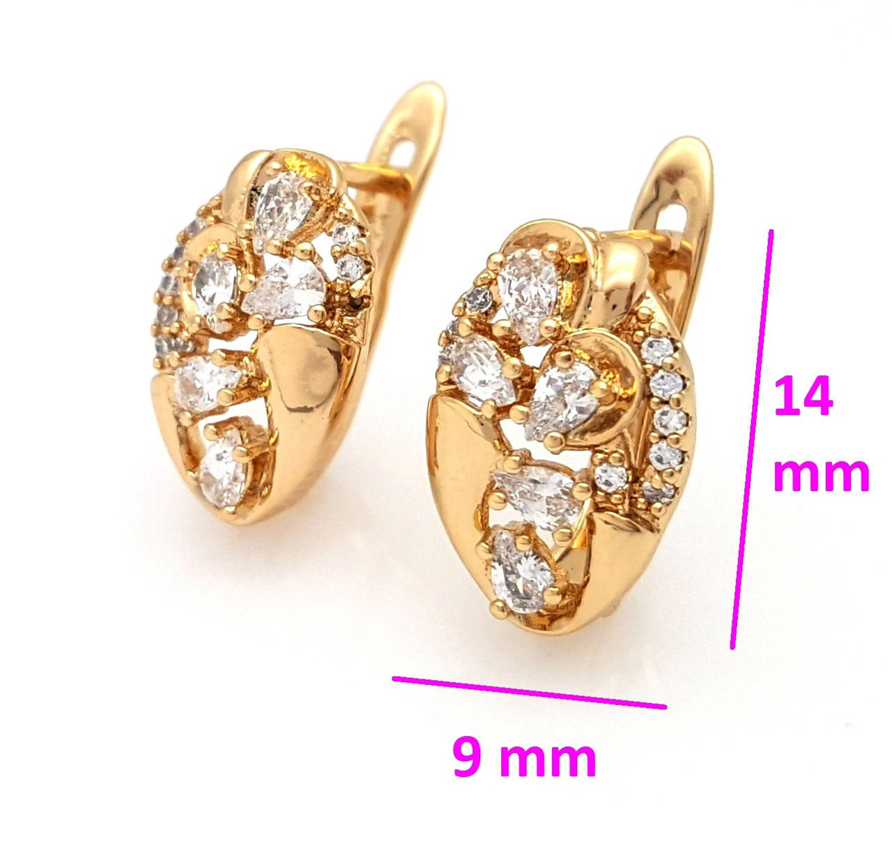 Серьги Овал, с россипом циркония, англ.замок, позолота Xuping, 18К