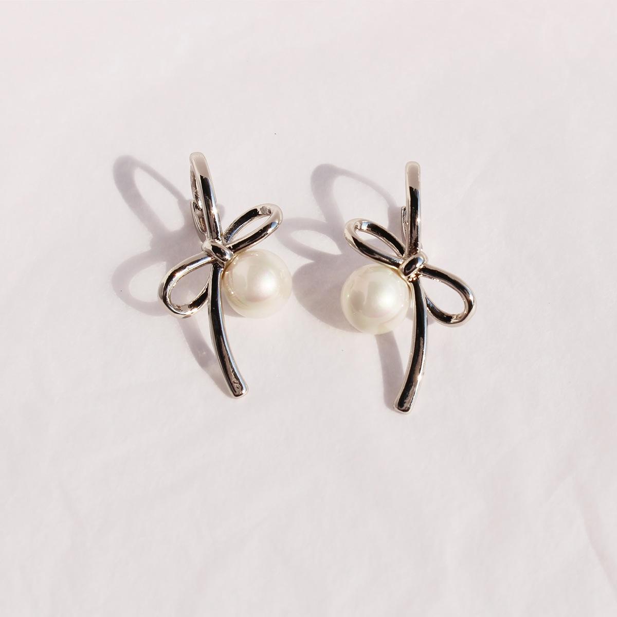 Серьги-бантики корейские нежные темпераментные жемчужные серьги-пряжки для поездок на работу изысканные универсальные маленькие серьги 834 платиновый