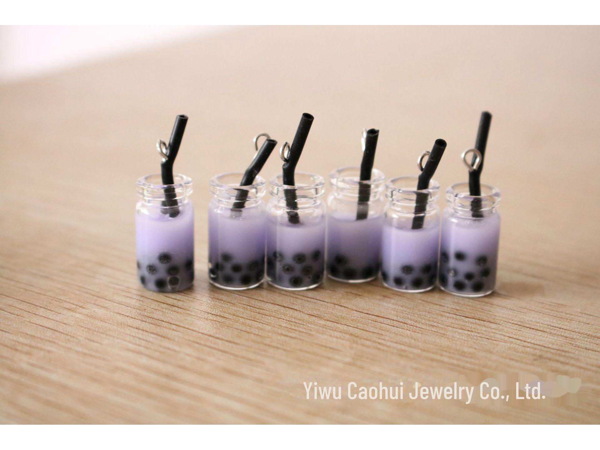 Серьги и брелок в форме чашки молочного чая с 3D-жемчужинами - Креативные украшения из смолы White Straw without Loop