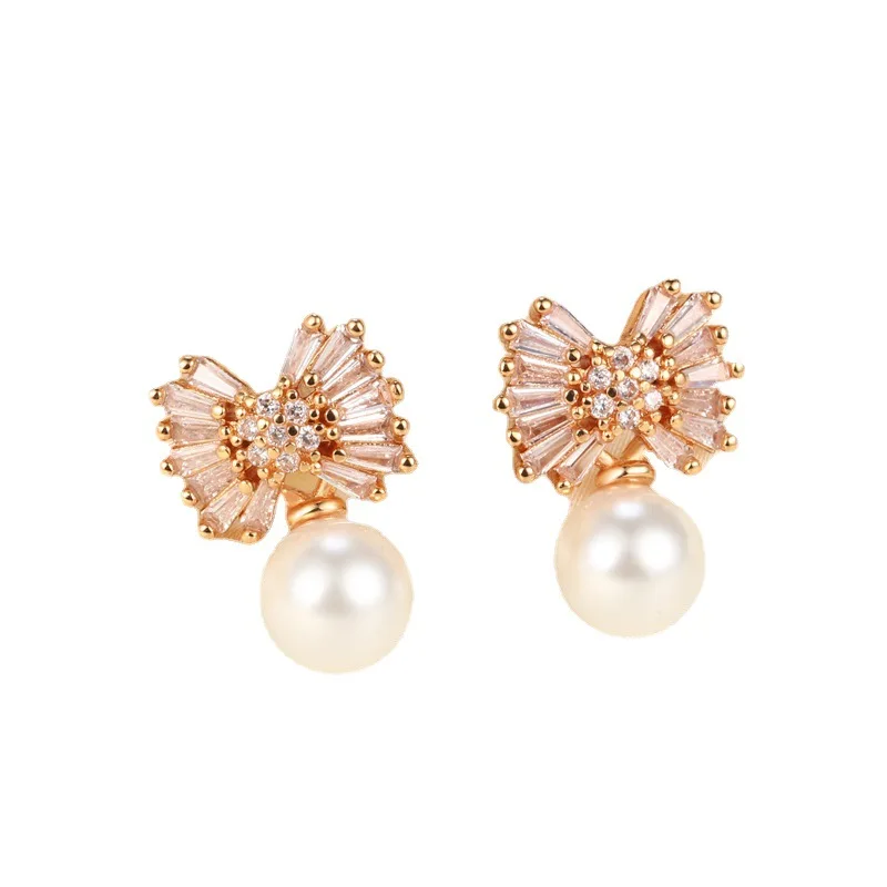 Серьги в роскошном стиле, модные серьги, небольшой набор, женские серьги с бантом и жемчугом