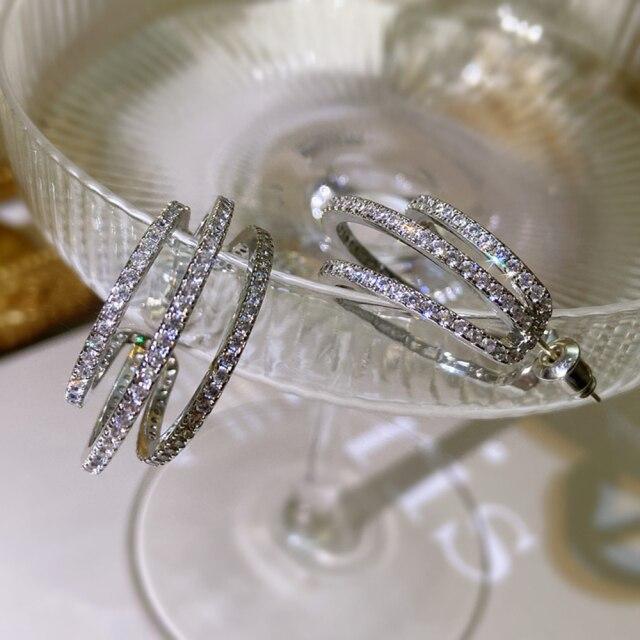 Серьги в форме дуги C-образной формы, простые ретро-серьги с бриллиантами и тремя слоями, геометрические серьги, темперамент, продвинутое чувство роскоши, ювелирные изделия, джокер