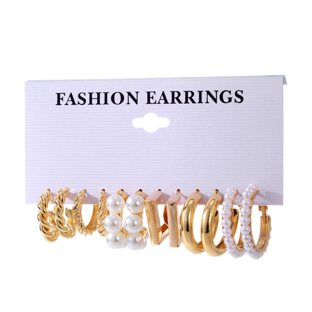 Серьги в форме карты с металлическим жемчугом и ромбовидным креплением, набор из 6 шт.
