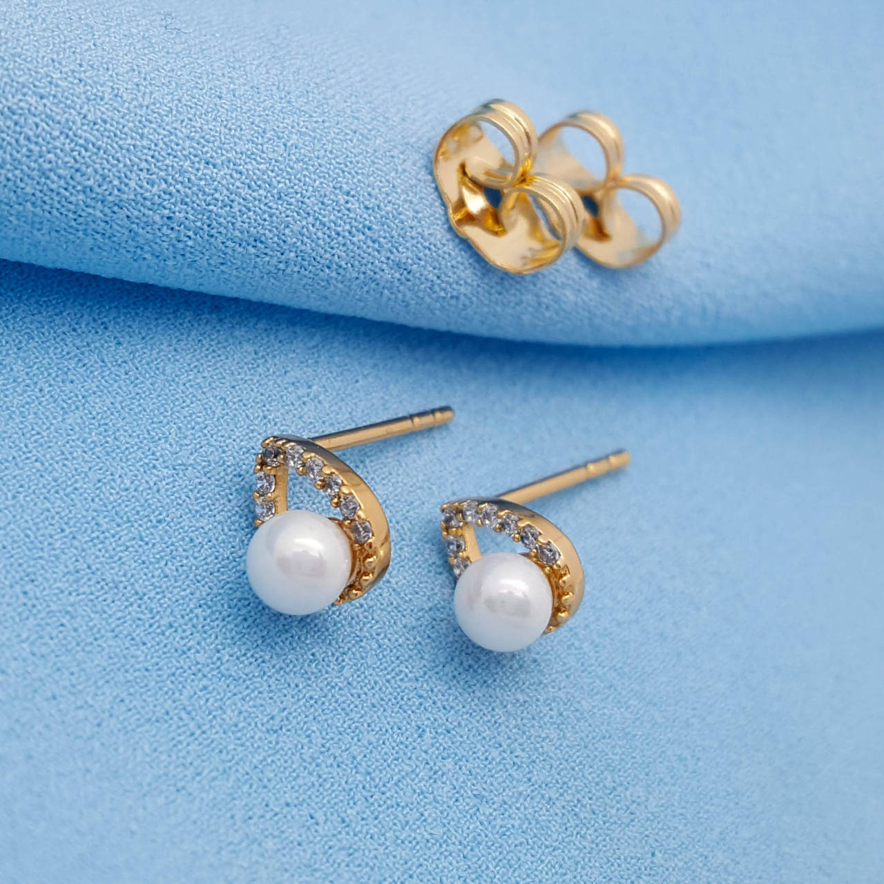 Серьги гвоздики, Жемчужинка, с цирконием, позолота Xuping