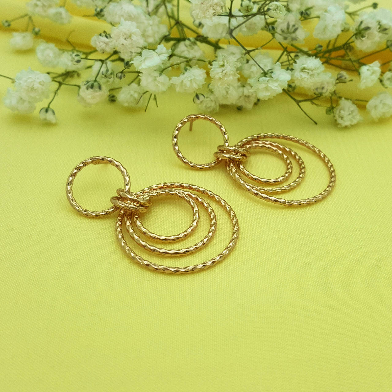 Серьги-гвоздики, Кольца с насечкой, без камней, медзолото, 18К
