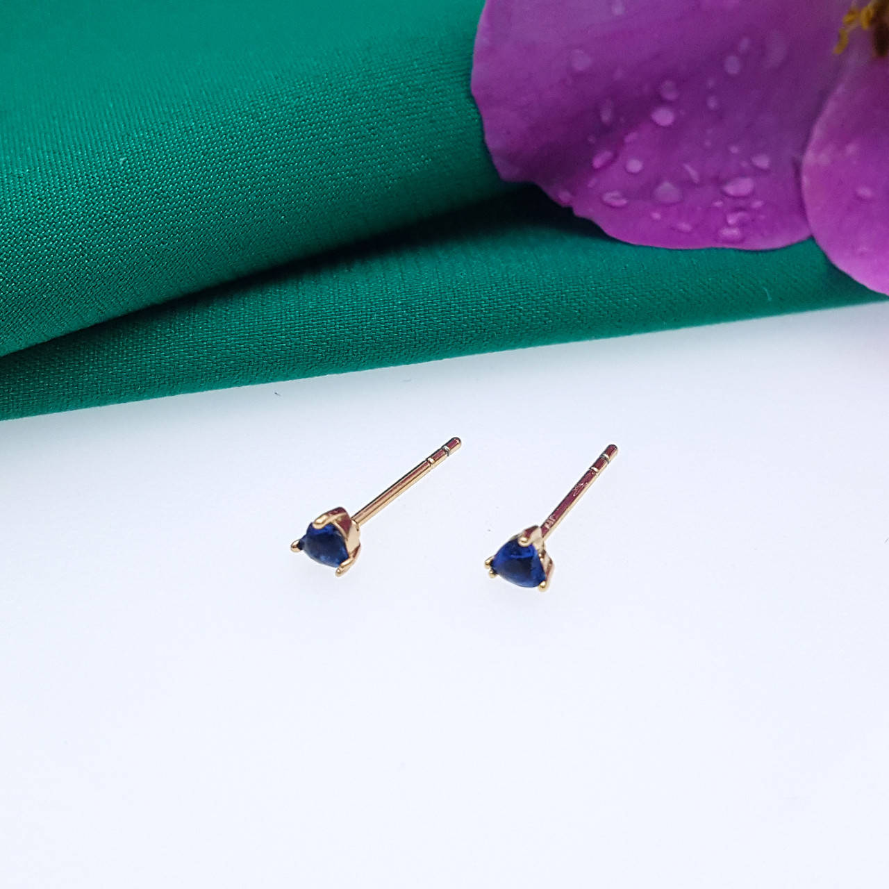Серьги гвоздики, "Сердце" с синим цирконием, медзолото Xuping, 18К