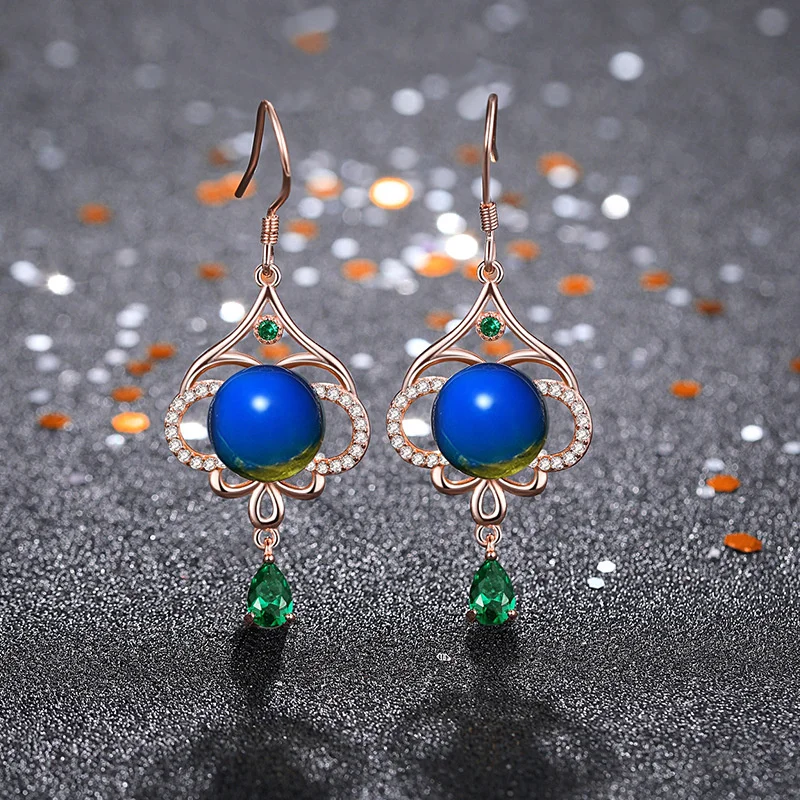 Серьги-гвоздики в китайском стиле ручной работы с инкрустацией нефрита и гуфа