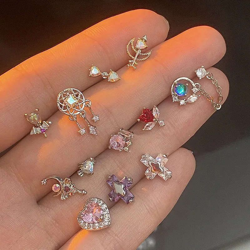 Серьги-гвоздики женские длинные с кисточками и звездочками из циркония, 1 шт.