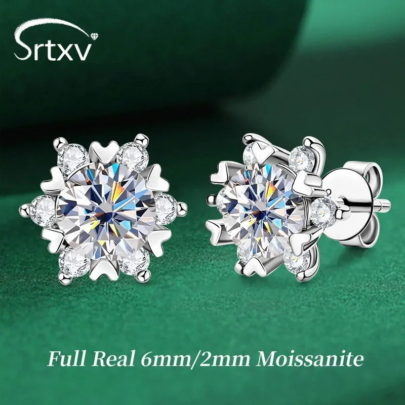 Серьги-гвоздики женские из серебра 925 пробы с муассанитом, 6/2 мм