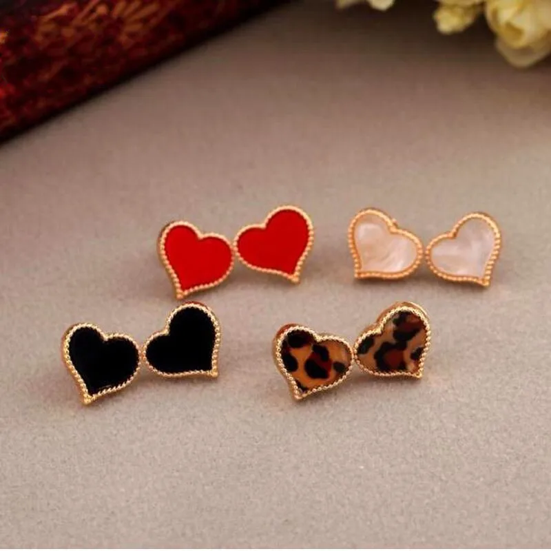 Серьги-гвоздики женские, с красным сердцем, золотого цвета, индивидуальные серьги-клипсы